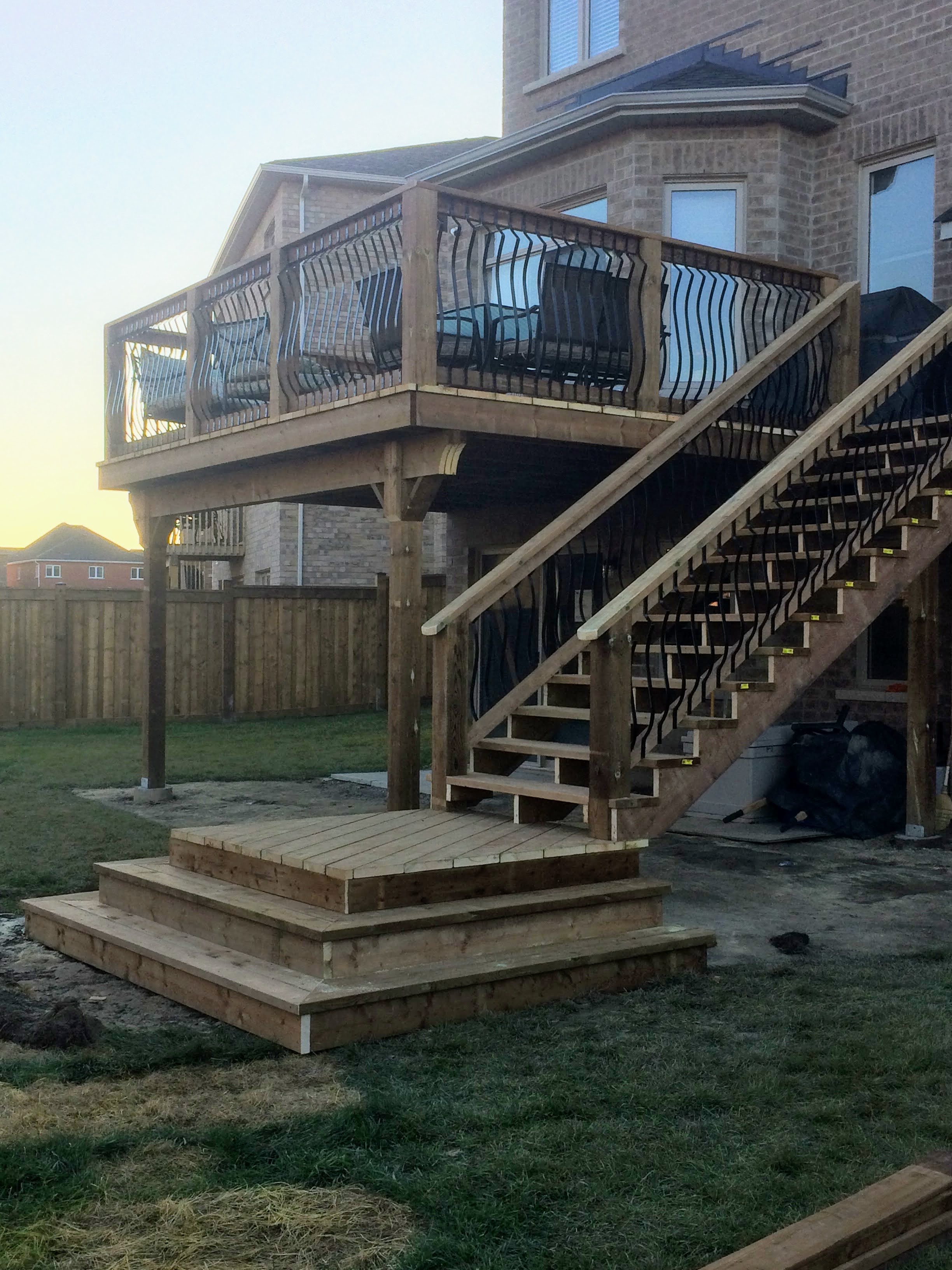 Our company specializes in crafting custom decks tailored to your preferences. Whether you choose from our designs or have a specific vision in mind, our carpenters—with 10+ years of experience—will bring your dream outdoor space to life. Offering materials such as pressure-treated wood, cedar, or composite, along with various railing options, we accommodate every imagination and budget. We take pride in our quality and final results, achieved by dedicating attention and necessary time to every detail of the project.