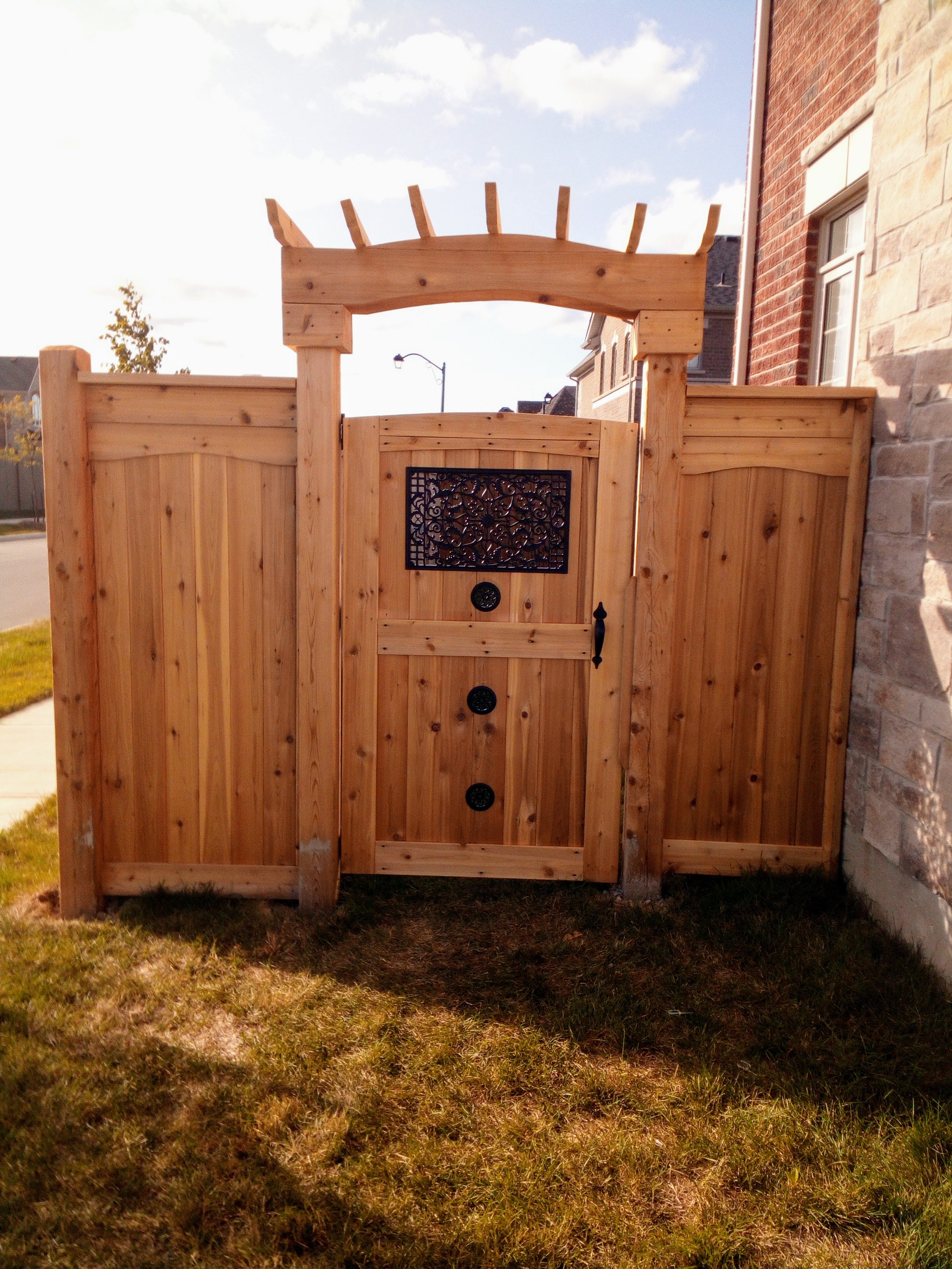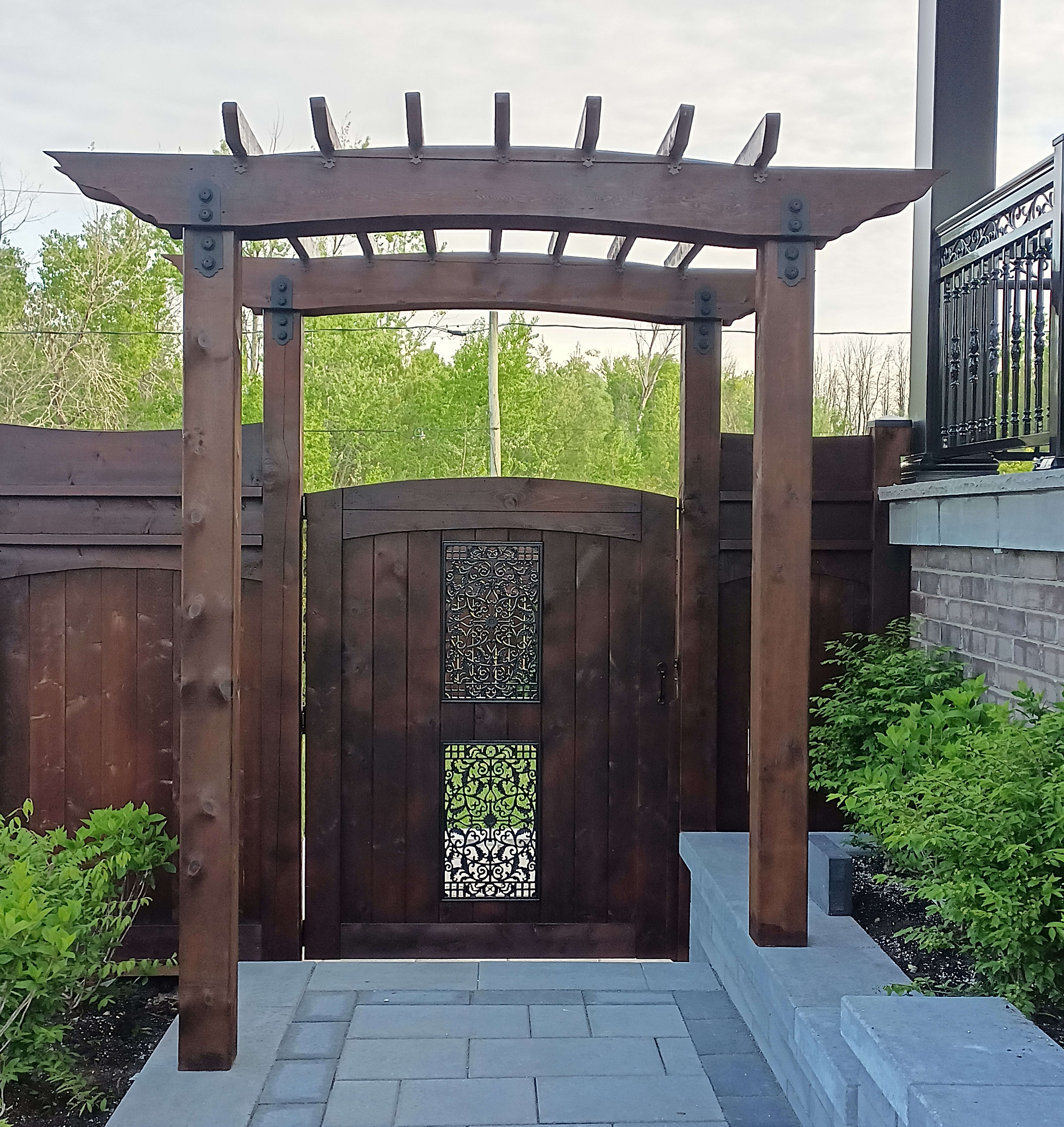 Just like fences, gates come in a diverse range of designs and materials, including single gates, double gates, and upgraded options featuring pergolas. Our wooden gates exude timeless charm and can be customized with various inserts available in different shapes and sizes.